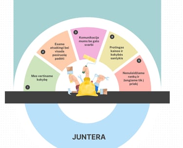 MB „Juntera“ yra jauna, bet perspektyvi įmonė, kuri specializuojasi į daugiaaukščių gyvenamųjų namų statybos sritį. Mūsų paslaugos apima nuo paties projekto pradžios iki baigiamųjų statybos darbų, kad užtikrintume jaukumą ir kokybiškumą atitinkantį kliento poreikius ir norus. Naudojame tik aukštos kokybės medžiagas ir naujausias statybos technologijas, kurios užtikrina tvirtus ir patvarius namus. Jau baigtas I statybų etapas! Nuolat tobulėjame ir plečiame savo kompetencijas. Visada siekiame geriausių rezultatų. Patikima ir į kokybę orientuota statybos įmonė - Jūsų tobuliems namams!